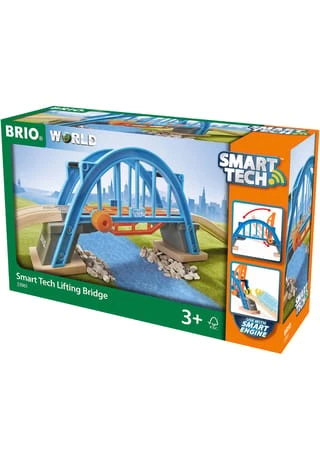 Mit dieser interaktiven Smart Tech Hebebrücke wird das Spiel in deiner BRIO World noch spannender. Du regelst den Verkehr in deiner BRIO World: Mit dem orangen Drehknopf kannst du die Brücke hochklappen, um ein Schiff durchfahren zu lassen, oder absenken, um einen Zug durchzulassen. Diese Brücke verfügt auch über Smart Tech Funktionen und interagiert mit der Smart Tech Lok (nicht enthalten): Wenn die Brücke hochgeklappt ist, hält die Lok an, hupt und blinkt. Wird die Brücke abgesenkt, setzt sie sich wieder in Bewegung und hupt fröhlich, während sie über die Brücke tuckert.