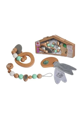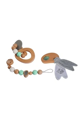 Set bestehend aus Schnullerkette, Beißring und Greifling