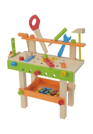 Eichhorn Werkbank: Hier können kleine Handwerker richtig loslegen. In der 49-tlg. Eichhorn Werkbank findet alles seinen Platz: Die Säge, der Hammer der Schraubenschlüssel und viel weiteres Zubehör, wie Schrauben, Muttern und Verbindungselemente. Im unteren Ablagefach sind Kleinteile gut verstaut. Die Werkbank hat eine Höhe von ca 39cm und ist für Kinder ab 3 Jahren geeignet. Inkl. Zubehör, 49-tlg., 19x42x39cm, Lindenholz, Sperrholz, BSK, 3J+