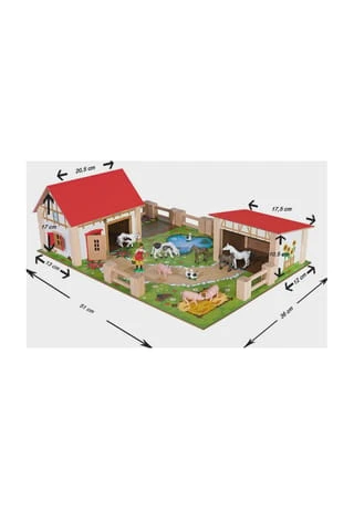 Tierischen Spaß erlebt man auf dem Eichhorn Bauernhof. Auf der 36x51cm großen Spielplatte entsteht eine schöne Spielfläche mit unterschiedlichen Wegen für die Tiere zum Leben. Der Bauer und die Bäuerin wohnen im Bauernhaus und die Tierchen in einem großen, gemütlichen Stall.