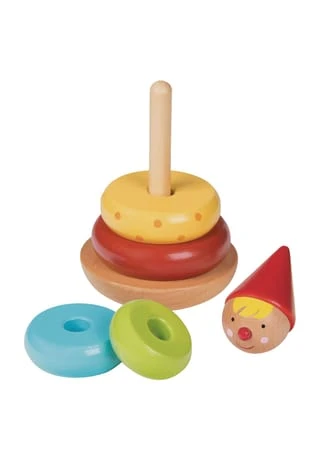 Kannst du schon die Ringe von groß nach klein sortieren? Durch den abgerundeten Boden wackelt der Turm allerdings beim Stapeln hin und her und erschwert das Ganze. Dies fördert nicht nur die Motorik, sondern auch die Auge- Hand-Koordination.