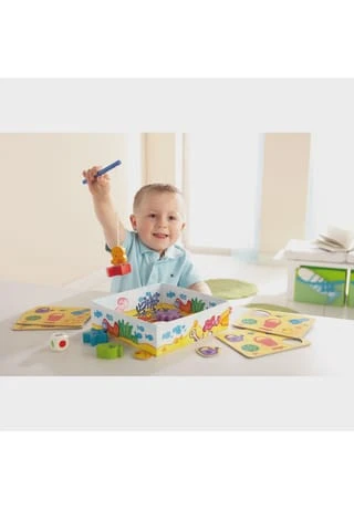 einen Fisch in der entsprechenden Würfelfarbe angeln