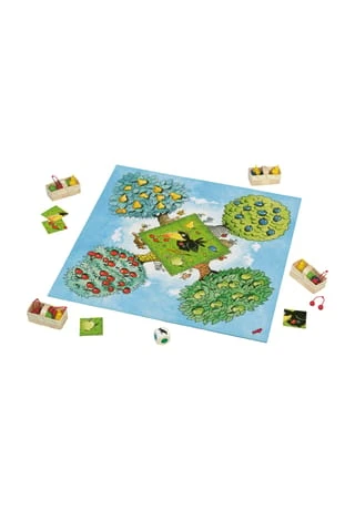 Im Obstgarten hängen die saftigsten Kirschen, Äpfel, Pflaumen und Birnen. Doch die will ein anderer stibitzen: Rabe Theo ist schon im Landeanflug! Jetzt brauchen die Spieler etwas Würfelglück. Gemeinsam versuchen sie, die Früchte zu ernten, bevor der freche Rabe den Obstgarten erreicht.