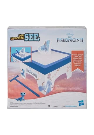 Mit den beliebten Charakteren aus Disneys Die Eiskönigin II macht das Spielen noch mehr Spaß! Beim Spiel “Der gefrorene See” klopfen die Spieler nacheinander die Eiswürfel rund um Elsa und den Wasser-Nokk mit einem Eisklopfer heraus. Ziel des Spiels ist, Elsa und Nokk dabei nicht von der gefrorenen Eisdecke stürzen zu lassen. Doch das ist gar nicht so leicht, denn im Laufe des Spiels wird die Eisdecke immer löchriger, wenn ein Eiswürfel nach dem anderen herunterpurzelt. Wem es als einziger Spieler gelingt, Elsa und Nokk nicht in den See fallen zu lassen, gewinnt. Ein cooles Spiel für Kinder ab 3 Jahren.