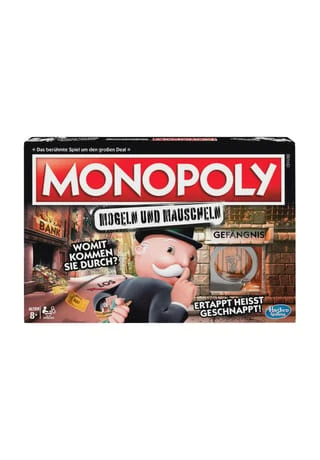 Wer kommt mit den meisten Mogeleien durch? Befolgen Sie die Spielregeln oder auch nicht – (fast) alles ist erlaubt bei dieser Variante des berühmten Brettspiel-Klassikers! Auf dem Spielplan liegen Mogelkarten, die die Spieler versuchen zu erfüllen. Heimlich Geld aus der Bank nehmen? Zu viel Miete berechnen? Beim Würfeln mogeln? Wer von den 2-6 Spielern ab 8 Jahren am besten mauschelt, ist im Vorteil. Aber wer erwischt wird, muss mit der im Spiel enthaltenen Handschelle ins Gefängnis!