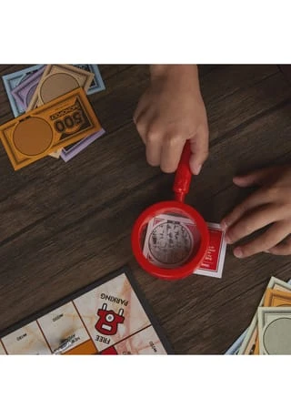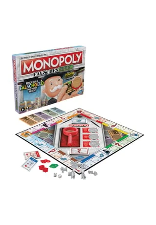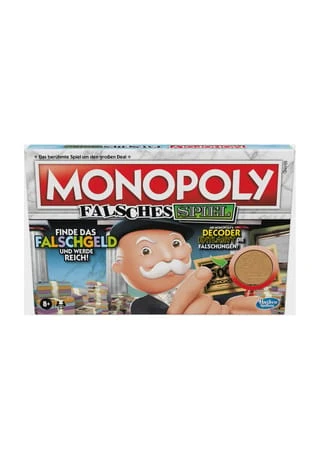 Muss ein Spieler etwas bezahlen, können die Mitspieler den Decoder benutzen, um das Geld auf Echtheit zu prüfen. Mit dem Decoder wird ein verstecktes Muster sichtbar und zeigt es „Falschgeld“ an, darf der Entdecker den Schein behalten. Achtung – auch Ereigniskarten könnten gefälscht sein! Benutzt ein Spieler eine Ereigniskarte, um keine Miete zahlen zu müssen, lohnt es sich, diese ebenfalls mit dem Decoder zu überprüfen, denn sie könnte eine Fälschung sein. Anstatt Steuern zu zahlen oder Versorgungswerke und Bahnhöfe zu kaufen, können die Spieler mit der Eisenbahn auf ein freies Feld ziehen und dieses schnell kaufen, bevor sie mit Falschgeld erwischt werden. Diese schnelle Version des bekannten Monopoly-Spiels bringt Familie und Freunde zusammen. Eine hervorragende Wahl für Familienspieleabende, als Mitbringsel zu Partys oder als Aktivität zu Hause für Kinder ab 8 Jahren.