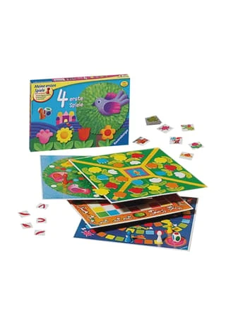 Spielesammlung mit ansprechend gestalteten Spielplänen und hübschen Motiven