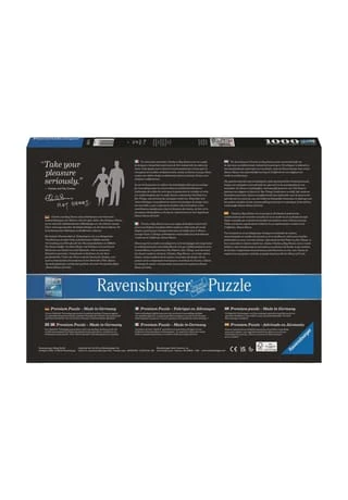 Ravensburger Puzzles bedeutet Puzzlespaß in Premium Qualität. Für Anfänger, Fortgeschrittene oder Profis – hier ist für jeden Puzzleliebhaber die richtige Teilezahl sowie das passende Motiv dabei. Puzzleteile, charakteristisch und einzigartig durch von Hand gefertigten Stanzwerkzeuge. Die jahrzehntelange Erfahrung in der Puzzleproduktion sowie den hohen Qualitätsanspruch lassen die Herzen der Puzzler höherschlagen und lässt erleben, wie eins zum andern passt. Hier wird Leidenschaft gelebt. Für Anfänger, die sich bei einer kleinen Teilezahl wohlfühlen, für Fortgeschrittene Puzzler, die eine mittlere Herausforderung bevorzugen und natürlich auch für die absoluten Profis, die vor 40.320 Teilen nicht zurückschrecken. Durch die enorme Motivvielfalt im Ravensburger Puzzle Programm steht einem unvergesslichen Puzzleerlebnis nichts mehr im Weg. Die Einzigartigkeit der charakteristischen Puzzleteile wird durch handgefertigte Stanzwerkzeuge erreicht, die in äußerster Uhrmacherpräzision im oberschwäbischen Ravensburg hergestellt werden. Jahrzehntelange Erfahrung in der Puzzleproduktion, den hohen Qualitätsanspruch an Material, Motiv und Design lassen die Herzen der Puzzler höherschlagen und lässt erleben, wie eins zum andern passt. Das ist die Ravensburger Leidenschaft für Qualität.