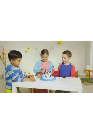 Spielspaß mit hohem Geschicklichkeitsfaktor: Auf dem Eisberg wird’s langsam eng. Immer neue Pinguine vergrößern die Kolonie und sorgen für Gedränge. Der schwimmende Untersatz gerät ins Wanken und die Pinguine fallen ins eiskalte Nass. Wer hat die beste Konzentration und das nötige Geschick hat, seine Seevögel oben, nimmt den Sieg mit nach Hause. Bei diesem spannenden Aktionsspiel können Polarforscher ab 4 Jahren beweisen, ob sie ein gutes Händchen haben! Bis zu 5 Spieler wetteifern darin, ihre Pinguine auf dem Eisberg so zu platzieren, dass sie nicht hinunterpurzeln. Dazu braucht es ein kühles Köpfchen, ruhige Finger und ein geübtes Auge, das die besten Plätze auswählt. Wer zu stürmisch agiert, riskiert schon mal, nicht nur seinen eigenen Pinguin, sondern auch den eines Mitspielers auf die Rutschpartie zu schicken – und muss dann alle heruntergepurzelten Antarktisbewohner behalten und wieder auf den Berg bringen. Eine Extraportion Spaß bietet die LED-Lampe. Wenn sie leuchtet, kann „Plitsch-Platsch Pinguin“ auch im Dunkeln gespielt werden. Sieger ist, wer zuerst alle seine Pinguine auf dem Eisberg postiert hat. Für jüngere Spieler gibt es zudem eine etwas leichtere Variante. Dieses Familienspiel mit toller Qualität bringt Spannung in jedes Kinderzimmer.