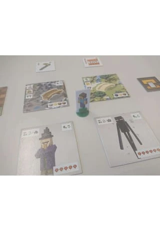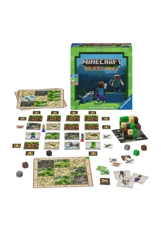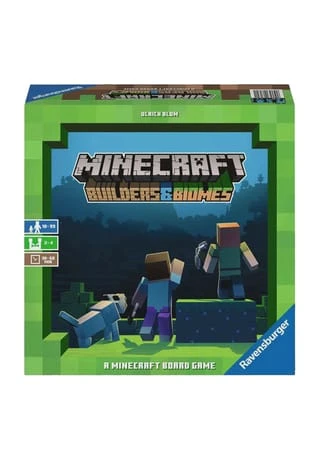 Das Brettspiel zum weltbekannten Videospiel-Phänomen „Minecraft“. Erkundet in diesem analogen Minecraft Abenteuer eine stets neue Welt und sammelt die meisten Erfahrungspunkte, um zu gewinnen. Führt dazu in eurem Zug zwei von fünf möglichen Aktionen aus. Sammelt Blöcke wie Holz, Stein oder Obsidian, die ihr zum Errichten von Bauwerken benötigt. Bewegt eure Spielfigur durch die Welt aus Kartenstapeln und sucht nach Bauwerken, die zu eurer Taktik passen. Wollt ihr einen Palast in der Wüste, einen Lamastall im Gebirge oder eine Brücke im Schnee? Besitzt ihr die passenden Blöcke, könnt ihr die Bauwerke auf eure Spielertafel bauen. Nur wer clever plant und möglichst große Gruppen einer Eigenschaft bildet, erhält in den drei Wertungen im Spiel viele Erfahrungspunkte und kann gewinnen. Nehmt euch in Acht vor den bekannten Minecraft Monstern wie Creeper, Zombie und Enderman, die sich ebenfalls in den Kartenstapeln verbergen. Wagt ihr den Kampf gegen ein Monster, winken euch Bonuspunkte und andere Belohnungen, falls ihr siegreich seid. Deckt Waffenplättchen aus eurem Vorrat auf und versucht mit euren Schwertern, Spitzhacken und Bögen das Monster zu besiegen. Falls ihr scheitert, solltet ihr mit eurer Spielfigur neue, bessere Waffenplättchen einsammeln. Mit Diamantschwert und TNT im Gepäck könnt ihr sogar einen Enderman bezwingen. Sobald ihr alle Blöcke abgebaut habt, endet das Spiel. Wer dann in den Wertungen und im Kampf die meisten Erfahrungspunkte gesammelt hat, gewinnt. Minecraft Builders & Biomes ist ein würfelförmiges Vergnügen für alle Minecraft Fans und solche, die es werden wollen.