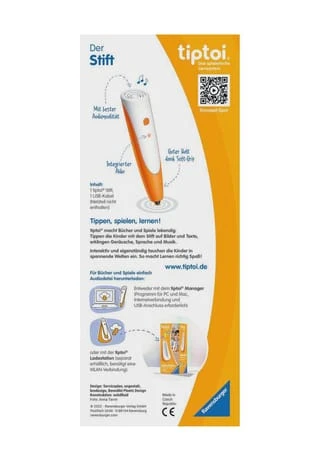 Der tiptoi-Stift macht Bücher und Spiele lebendig. Für noch mehr tiptoi-Spaß sorgt die überragende Audioqualität des Stiftes, mit dem die Kinder jetzt in ein noch intensiveres Hörerlebnis eintauchen – interaktiv und eigenständig. Der integrierte Akku bietet mehr Komfort. Der tiptoi-Stift der 4. Generation ist mit allen tiptoi-Produkten kompatibel (abgesehen von den CREATE Produkten). Tippen, spielen, lernen tiptoi macht Bücher und Spiele lebendig. Die zugehörigen Audiodateien lädt man einfach, sicher und schnell über den tiptoi Manager oder die optional erhältliche Ladestation auf den Stift.