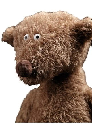 niedlicher brauner Bär und ein liebevoller Begleiter