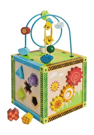 Eichhorn Color, kleines Spielcenter: Das Spielcenter von Eichhorn Color sorgt für unendlichen Spielspaß durch die vielen unterschiedlichen Aktivitäten, die dieser Würfel bietet. Diese Spielmöglichkeiten, darunter fallen die Motorikschleife, die Uhr, das Motorikspiel, das Drehspiel und die 5 Steckbausteine, fördern den Lernprozess der Kinder und unterstützen die Entwicklung des Feingefühls. Der Artikel hat eine Gesamtgröße von 20x20x37cm und ist für Kinder ab 1 Jahr geeignet.