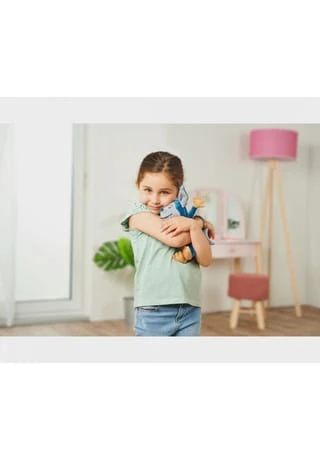 gestickte Augen und festgenähtes Halstuch können nicht abgerissen werden – Fidi bietet so auch den Allerkleinsten sichere Schmusestunden